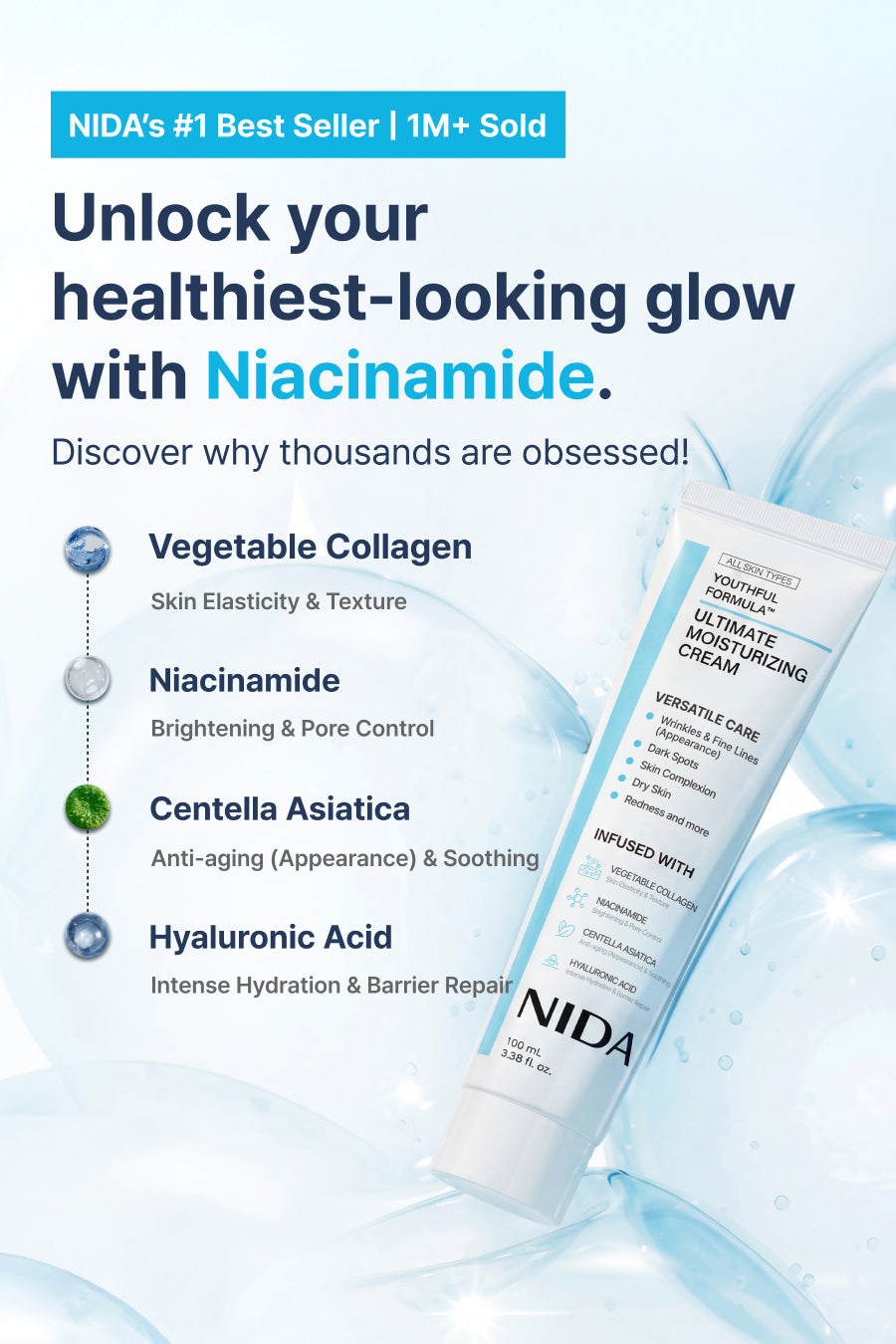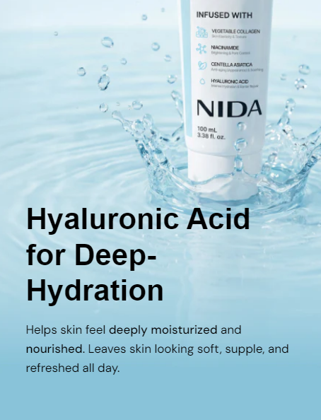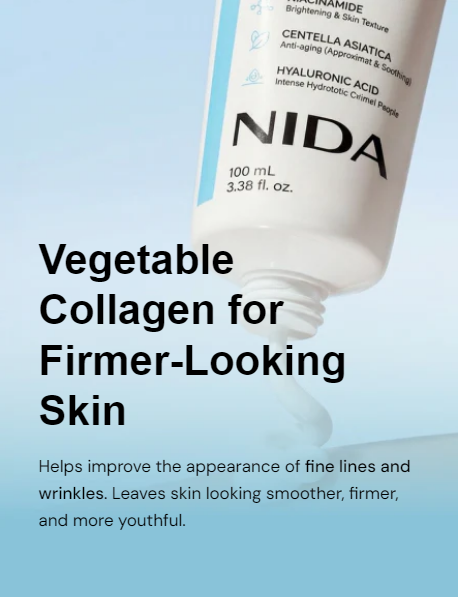 Our unique blend of Hydrolyzed Collagen, Niacinamide, Centella Asiatica, and Hyaluronic Acid hydrates, soothes, and helps skin appear smoother and more even-tonedāwithout heaviness or greasiness. Proudly made in Korea, the global beauty capital, the NIDA team created this product through extensive research and rigorous testing to ensure exceptional quality and results.